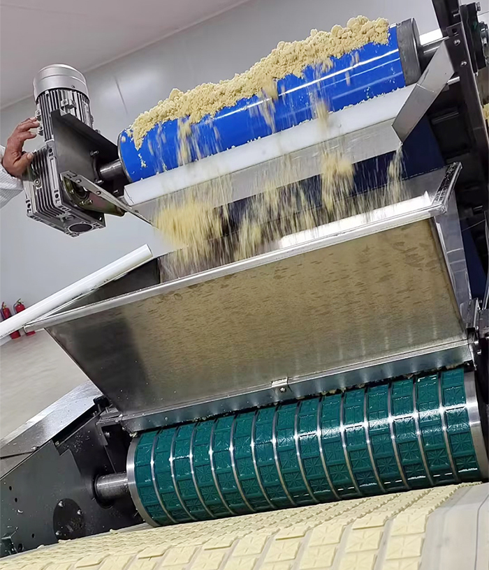 槳葉式臥式和面機攪拌器采用刀式槳葉,用于韌性餅干生產(chǎn)線,攪拌面團均勻?;ōh(huán)式和面機攪拌器采用鑄鋼螺旋攪拌,用于酥性餅干生產(chǎn)線。